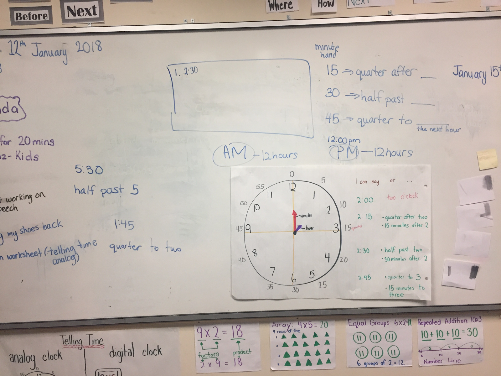 We also looked at our clock and tackled a misconception. When the time is 2:55 a lot of us will read the analog clock as 3:55. We looked at how the minute hand moves around and the hour slowly moves as well. So it has not yet reached the 3 yet so we have to stay on the hour and it is really 2:55.
